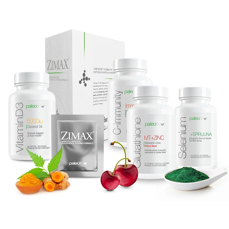 Zimax® Antioxidante en sobre: es una mezcla patentada que contiene: extracto de raíz de cúrcuma con 95% de curcumina, extracto de hoja de olivo, extracto de semilla de uva (Resveratrol) y extracto de hoja de romero. Gracias a la nanotecnología, su absorción está garantizada y alivia la inflamación del cuerpo.